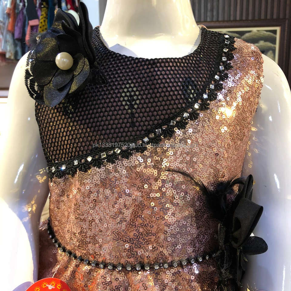 Robe à volants pour filles, vêtement à paillettes, motif floral, nouveau design, avec bandeau, à la mode,