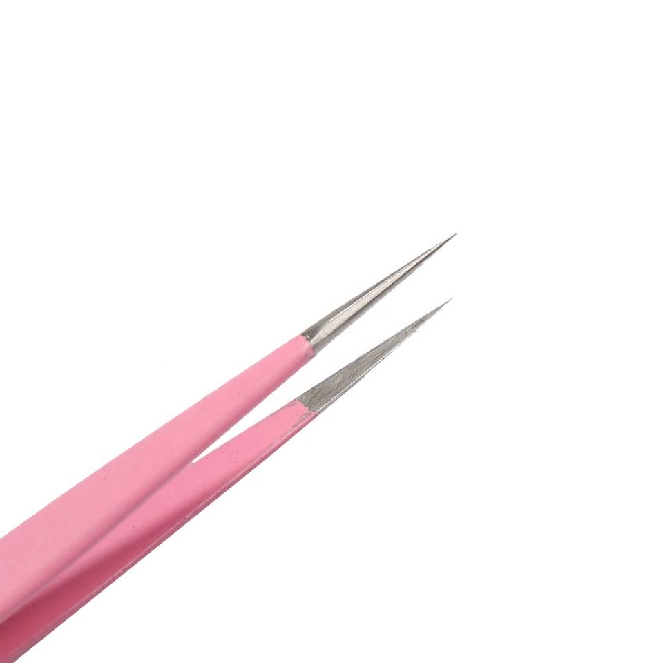 Imprimer Logo Nano Grip Microfibre Cils Pince À Épiler Volume Rose Extension de Cils Fiber Tips Pincettes Ensemble