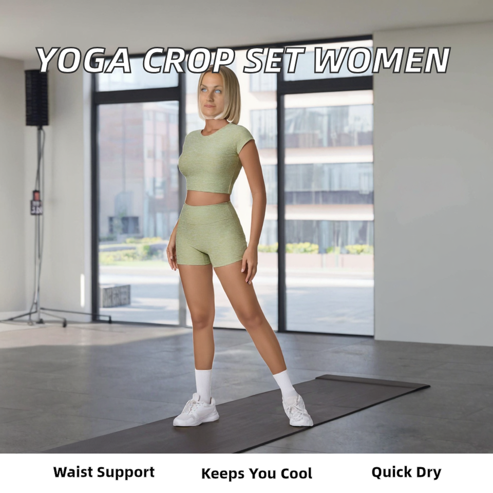 Ensemble de sport pour femmes, haut de yoga à manches courtes et short de sport, corset, fessier galbé, spandex/nylon
