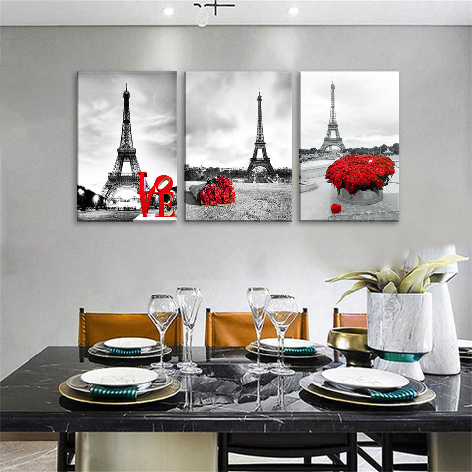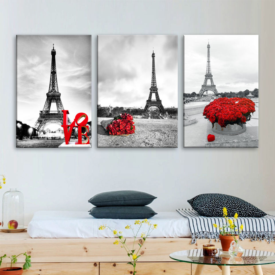 Impression et Roses rouges Art mural salon impression numérique moderne Style paysage HD toile tour Eiffel
