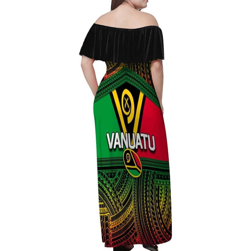 Impression à la demande personnalisé Vanuatu conçu Maxi robe polynésienne traditionnelle tatouage conception longue robe à volants robe épaules dénudées
