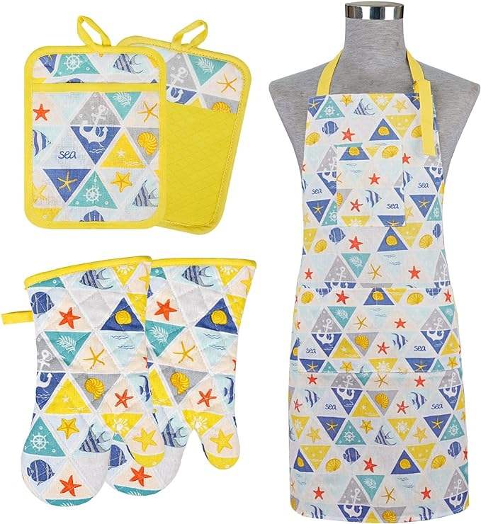 Ensemble de gants de tablier imprimé 100% coton tabliers de cuisine de luxe de haute qualité pour cuisine Bar Restaurant vêtements de cuisine