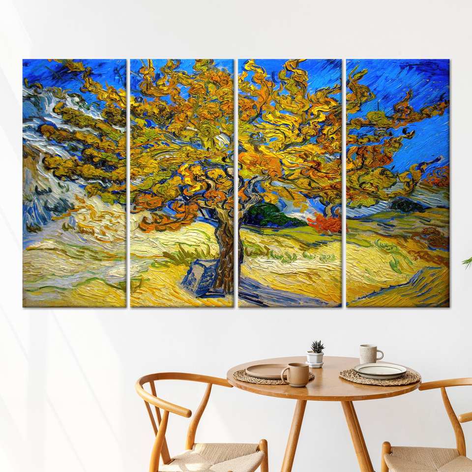 Toile imprimée : Impression artistique sur toile du chêne de Van Gogh, décoration murale, lot de 4 toiles