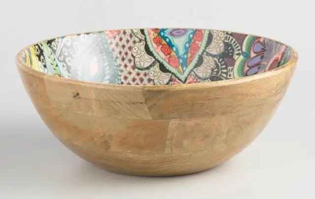 Bols de service en bois émaillé écologiques hautement finis, design imprimé coloré, vaisselle pour les fêtes, service de salade à bas prix