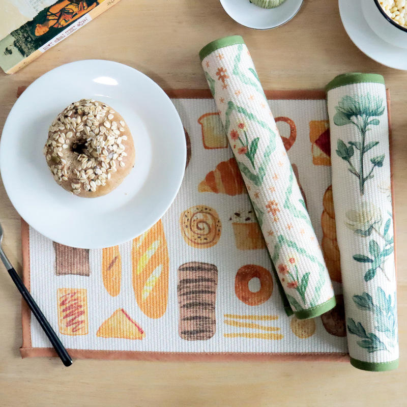 Set de table carré en coton imprimé, isolant thermique, motif floral marguerite et plantes vertes, pour la maison et la pâtisserie