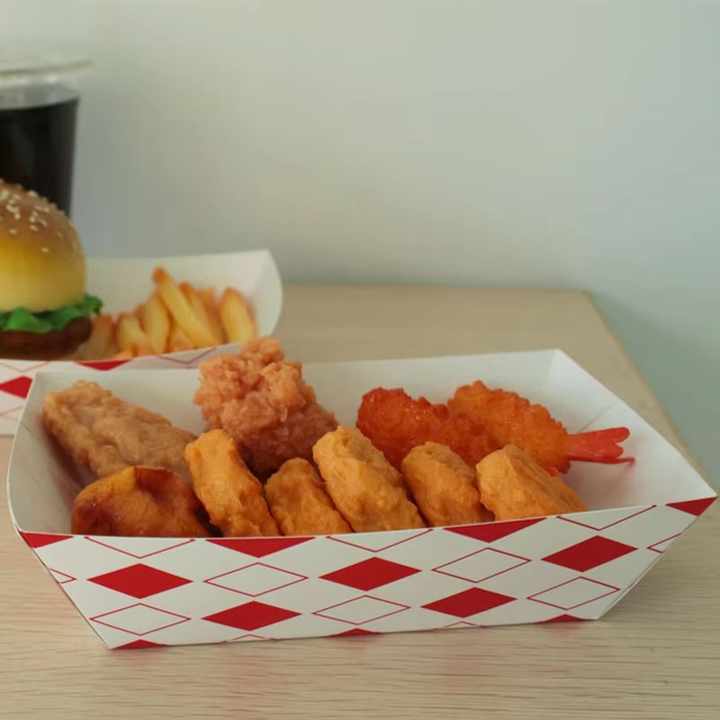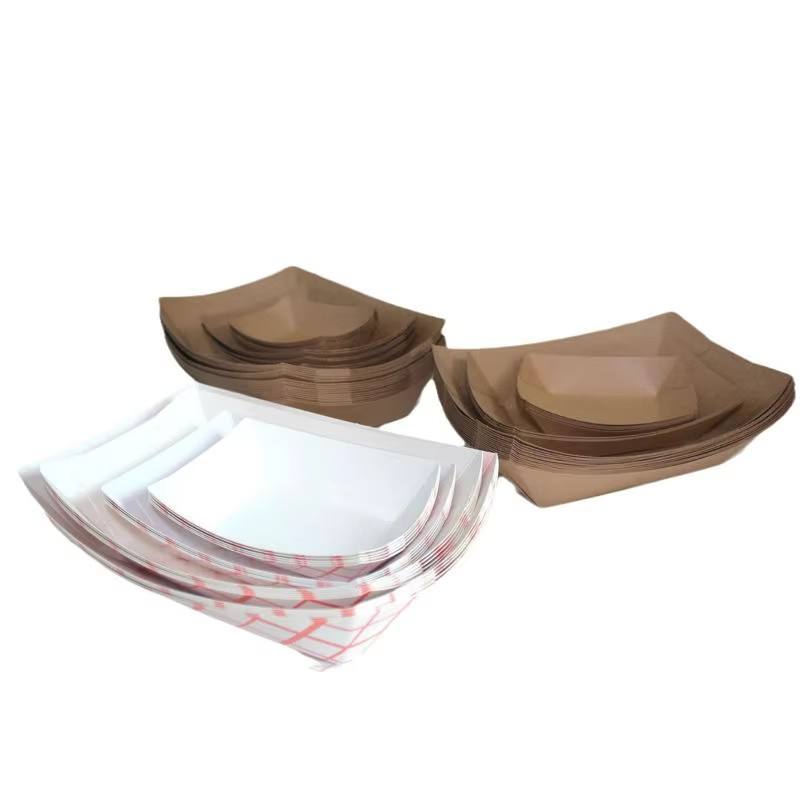 Boîtes en papier jetables personnalisées imprimées, résistantes à l'huile, pour frites, plateaux à snacks, emballages alimentaires, plateaux bateau