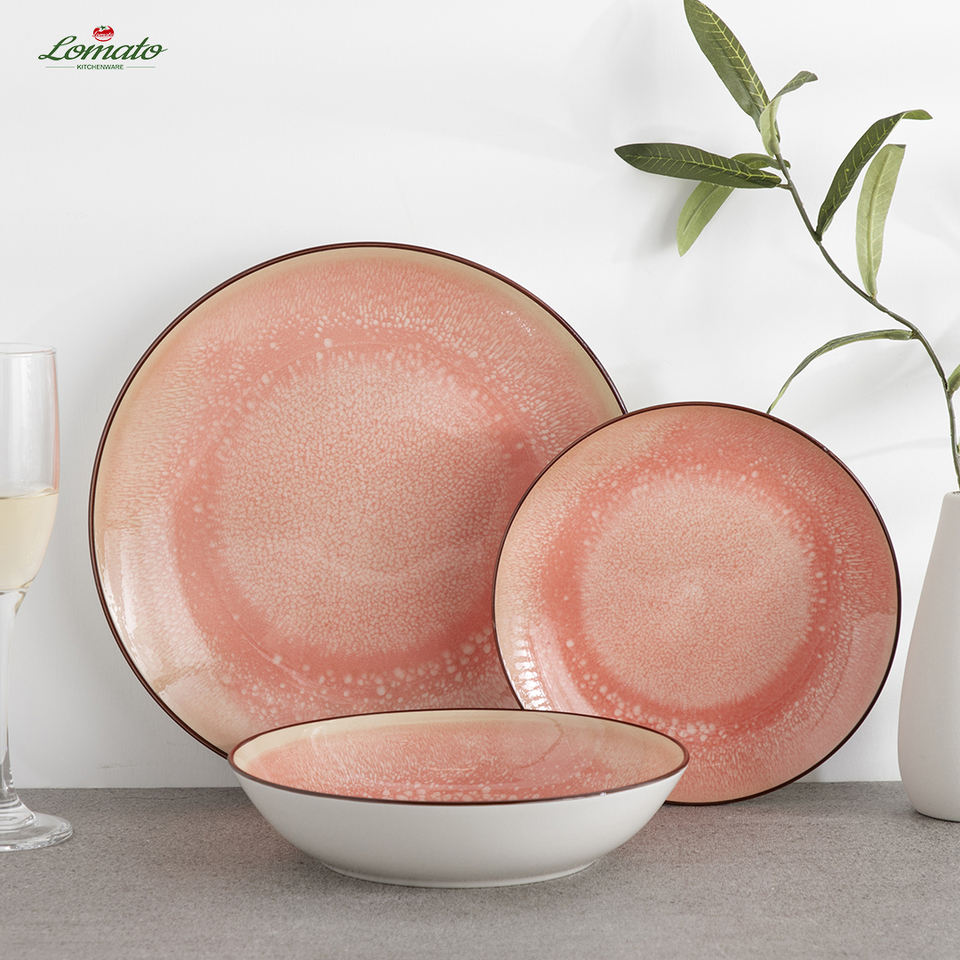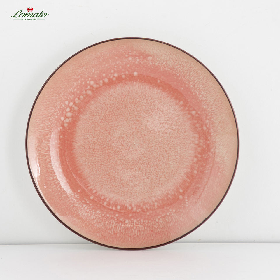 Assiettes à dîner en céramique rose à motif imprimé, vaisselle directe d'usine pour la maison et les restaurants