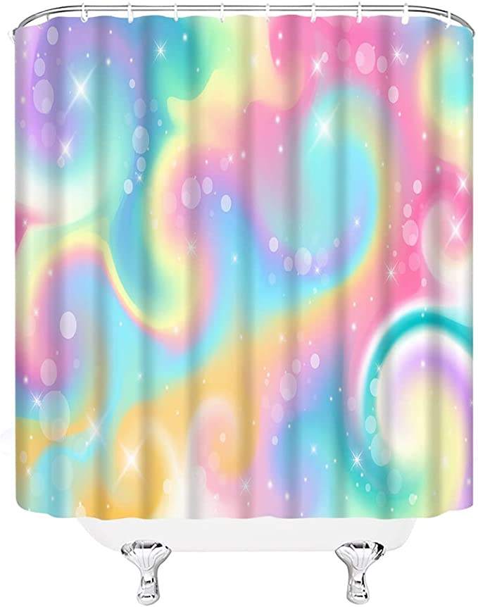 Rideau de douche gaufré imprimé, arc-en-ciel dégradé Pastel irisé, décor de salle de bain à domicile/