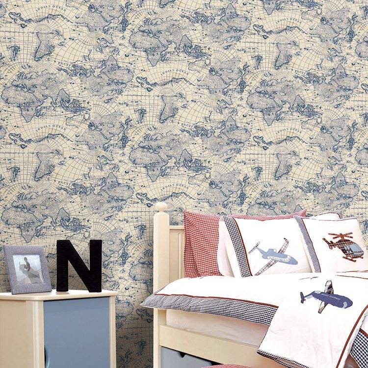 Printed Modern Non-woven Study Room Decorative World Map Wallpaper
