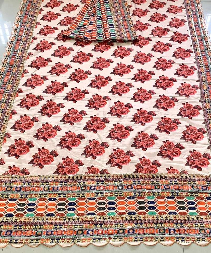 Sari en soie imprimé multicolore avec un design moderne, idéal pour les mariages et les festivals, un vêtement ethnique intemporel.
