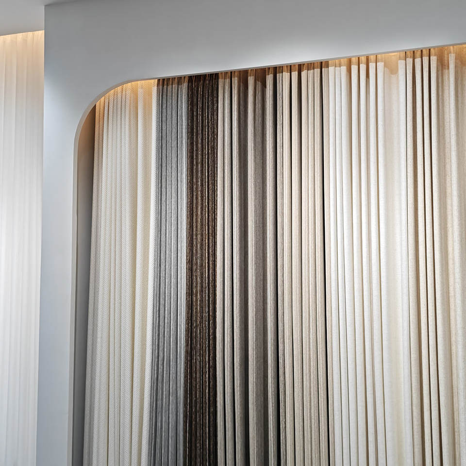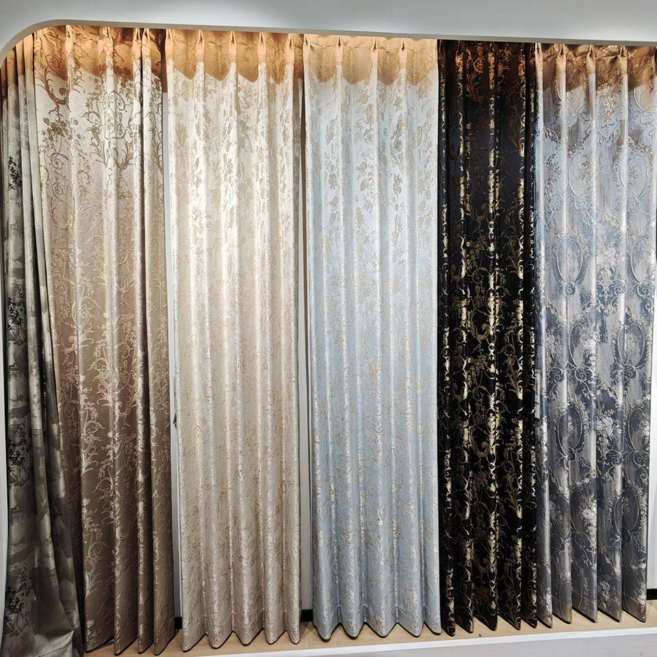Rideaux occultants en polyester à texture lin, avec motifs imprimés et broderies, insonorisants, avec crochets