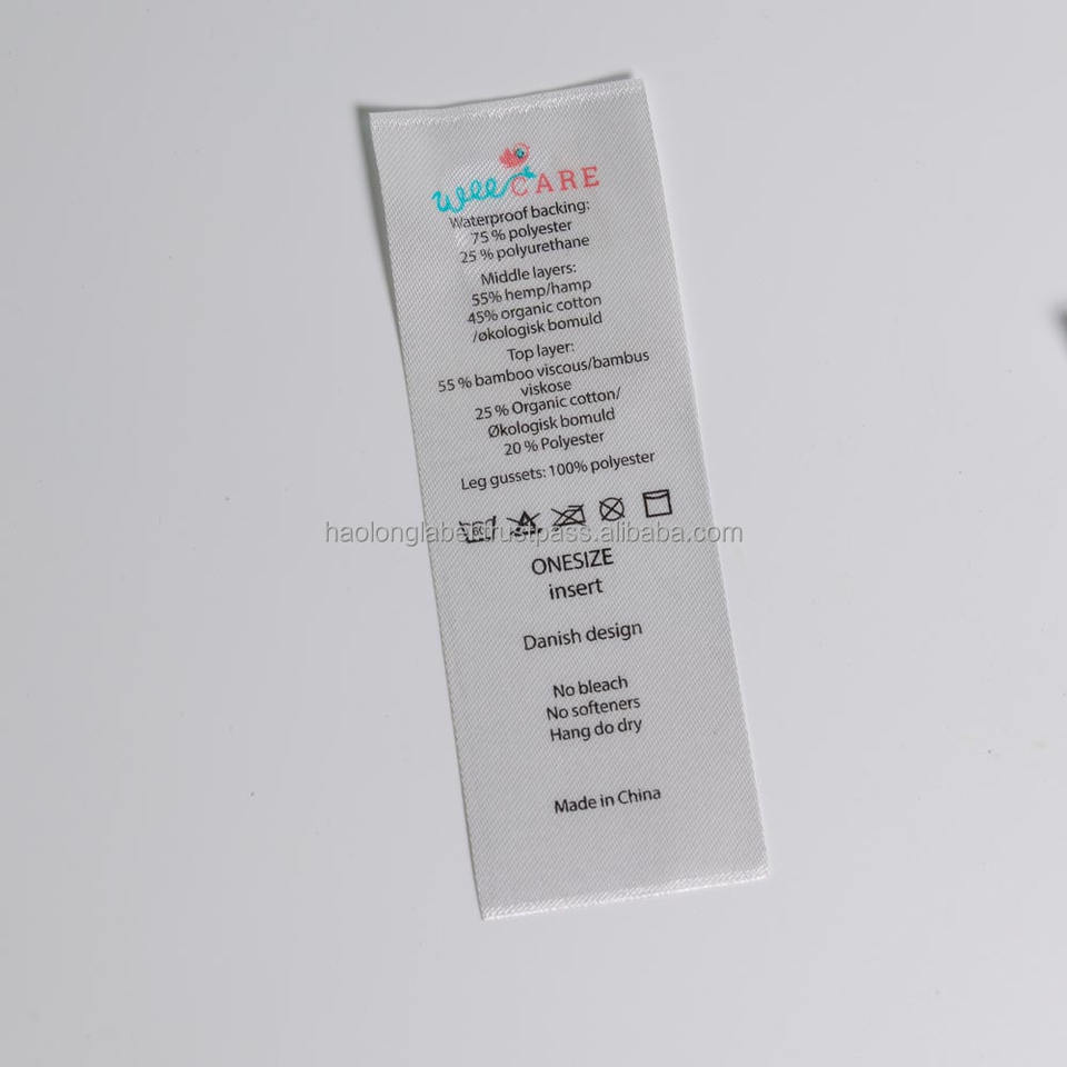 Transfert de chaleur d'étiquette d'entretien de ruban de polyester imprimé ou coudre sur l'étiquette de tissu avec le logo fait sur commande