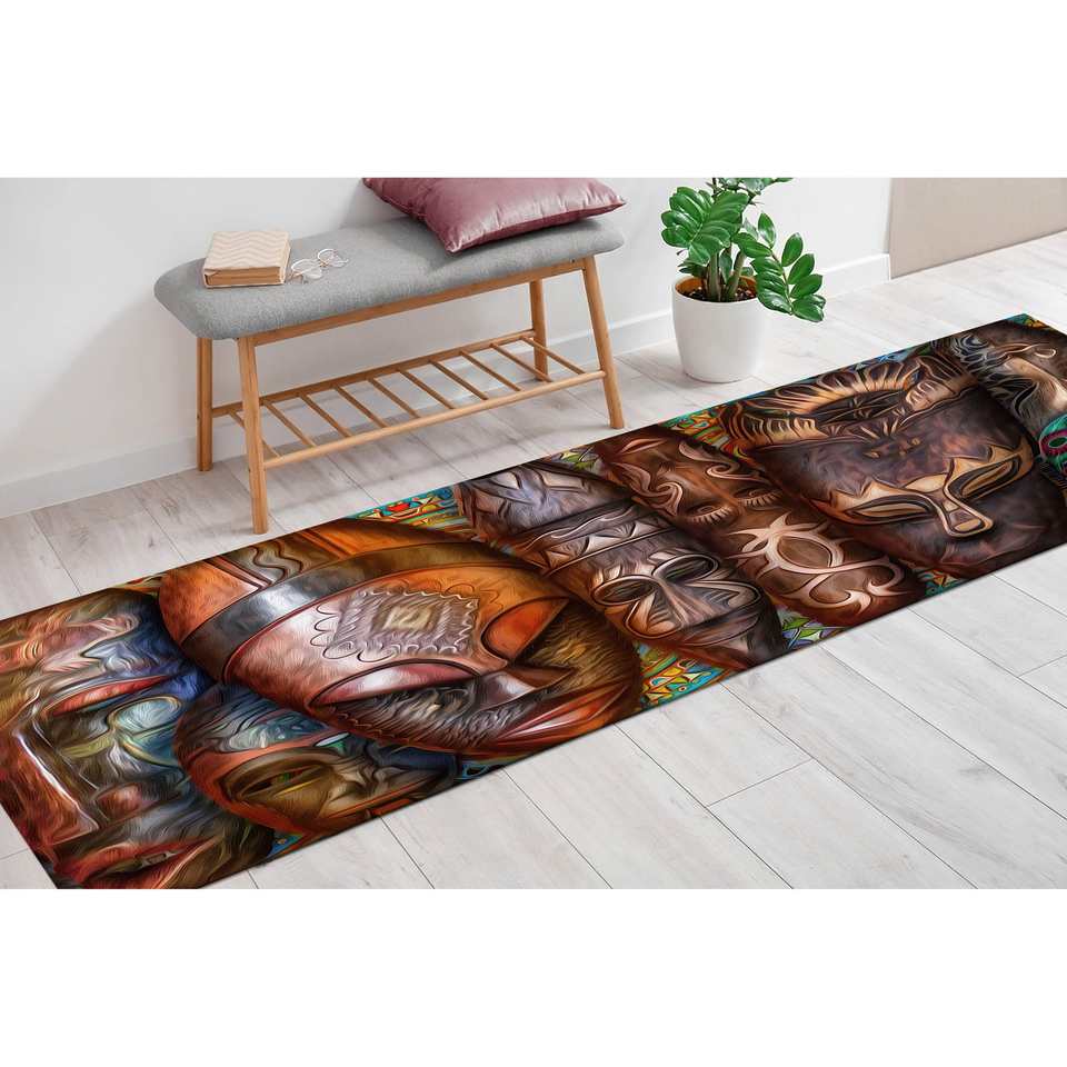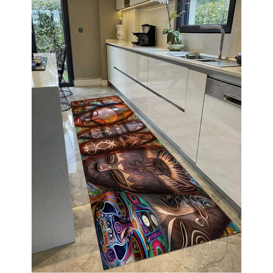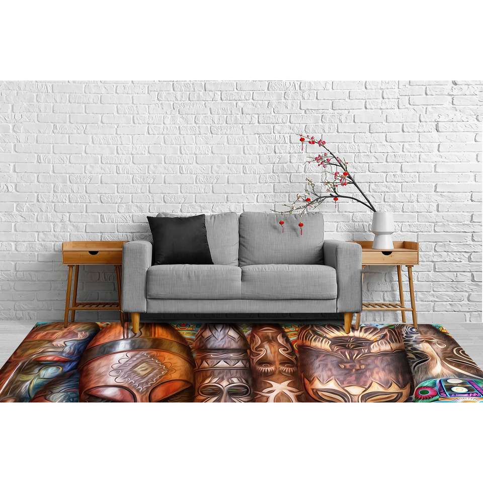 Tapis imprimé : motif de masque africain pour la décoration moderne de la maison, tapis doux non tissé