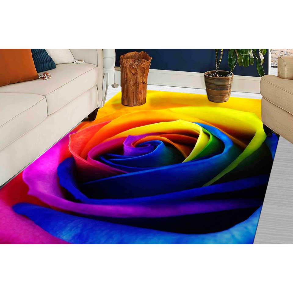 Tapis imprimé : Tapis rose coloré, personnalisé, grand format, en chenille, pour salon, tapis en velours
