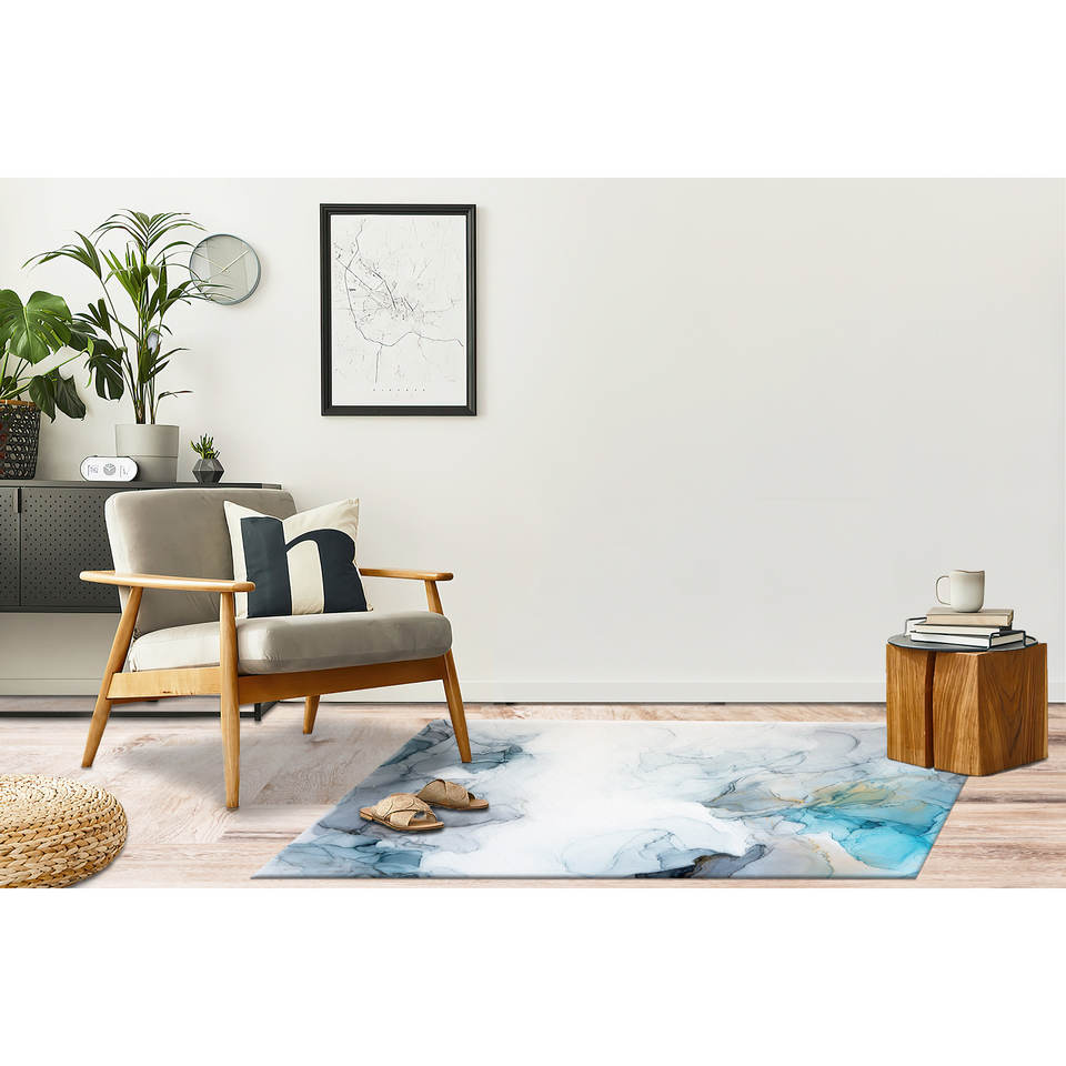 Tapis imprimé : Tapis de couloir bleu personnalisé avec un design moderne en marbre bleu, tapis en velours
