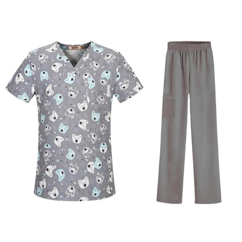 Ensembles imprimés uniforme multicolore et femmes Logo personnalisé respirant hôpital soins infirmiers gommage ensembles imprimés hauts col en v hôpital