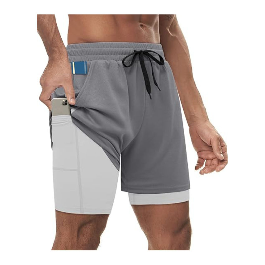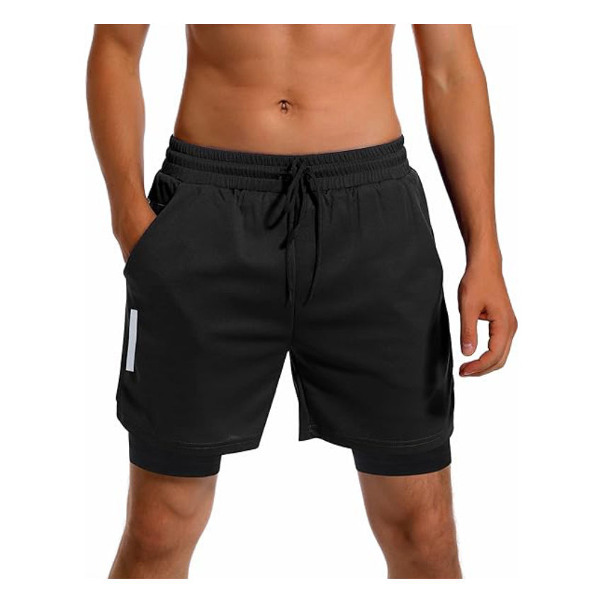 Imprimé solide hommes High Street Style 2-en-1 Double couche Shorts Sports d'été Gym Fitness Jogging course entraînement séchage rapide