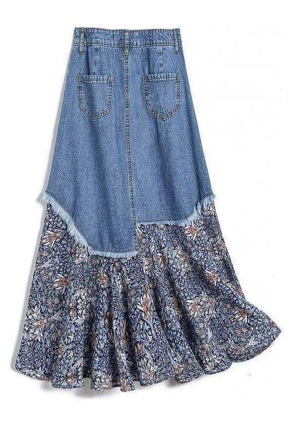 key words:Denim long printed split skirt