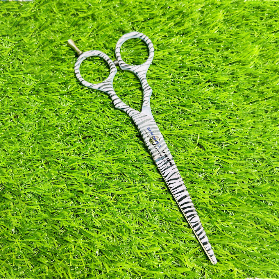 Ciseaux de barbier professionnels en acier inoxydable imprimé, à lames tranchantes, pour la coupe de cheveux en salon, pour un coiffage de précision, durables