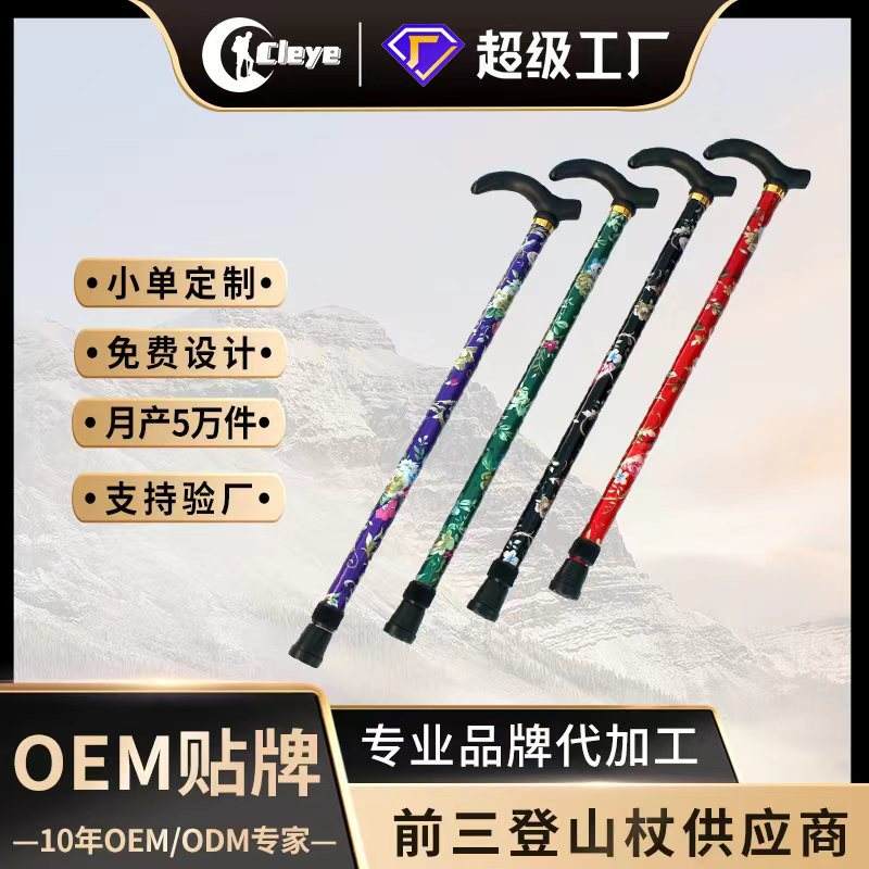 Canne en alliage d'aluminium imprimée à deux sections, légère, rétractable, portable, aide à la marche pour personnes âgées, support antidérapant