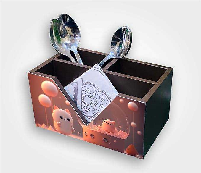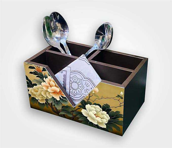 Printed Handmade Wooden MDF Customized Design Buddhist Theme Hanging Cutlery Organizer Luxury Kitchen Storage Box for Tabletop