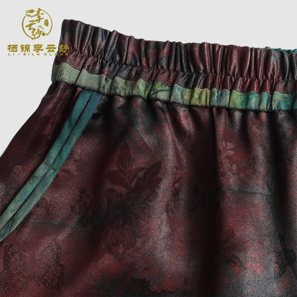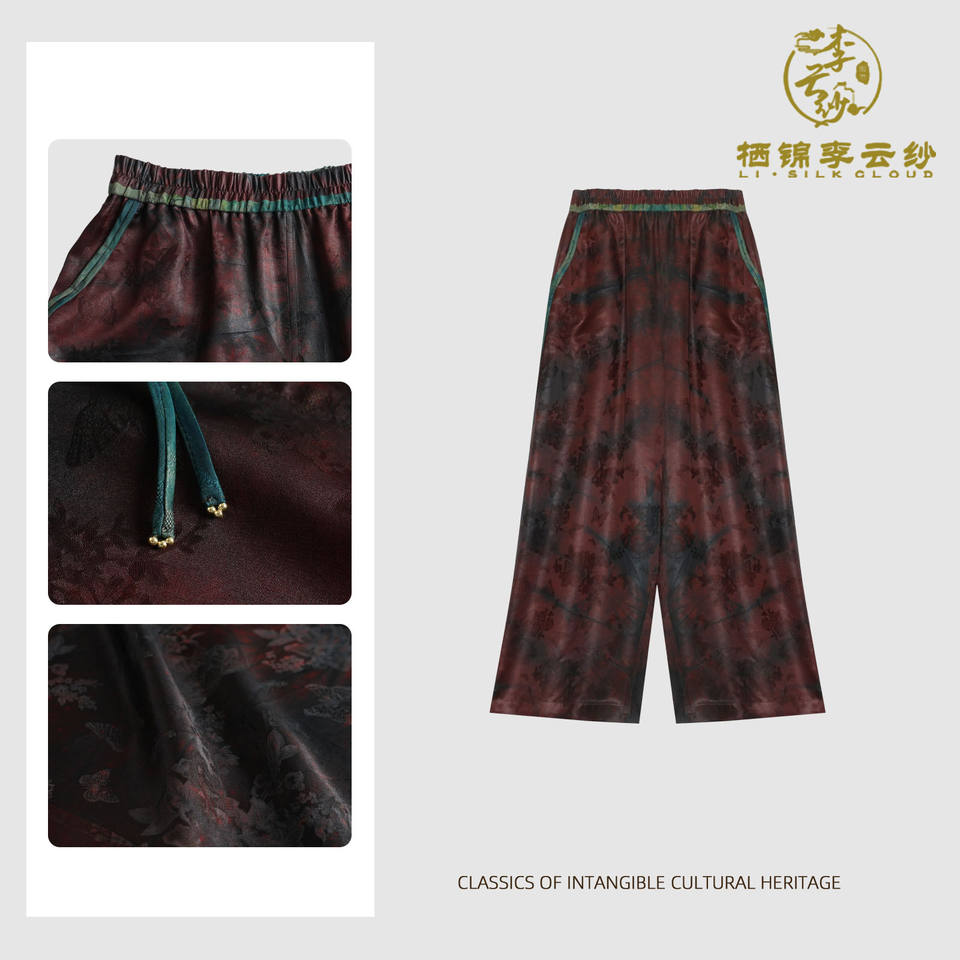 Fil de nuage rouge imprimé nouveau pantalon droit en soie chinoise pantalon femme de style chinois
