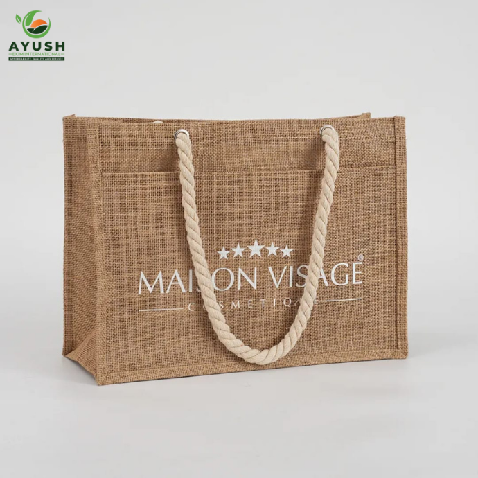 Printed shopping bags foldable made of 100% natural jute fibers custom shop bags for markets & malls