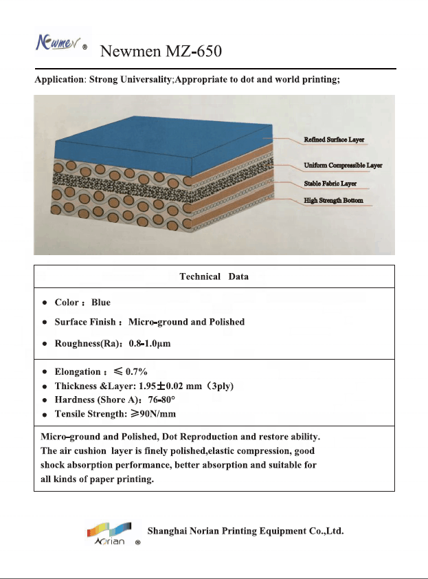 Printing Blanket MZ-650 Strong Universality Blankets Wholesale Crafting Materials Printing Blankets Rubber Roll Offset Newmen