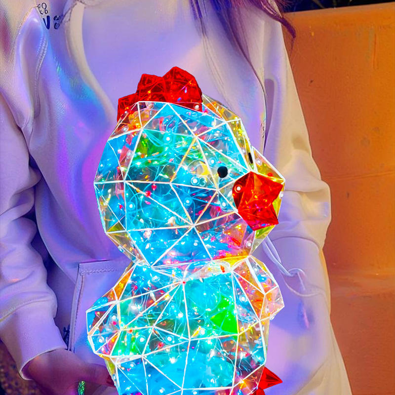 Lampe LED Iridescente Prismatique Écologique Faite à la Main, Alimentée par USB, Design Ferme Animale, Blanc Chaud, en Plastique, pour Poulailler (Poules, Coqs)