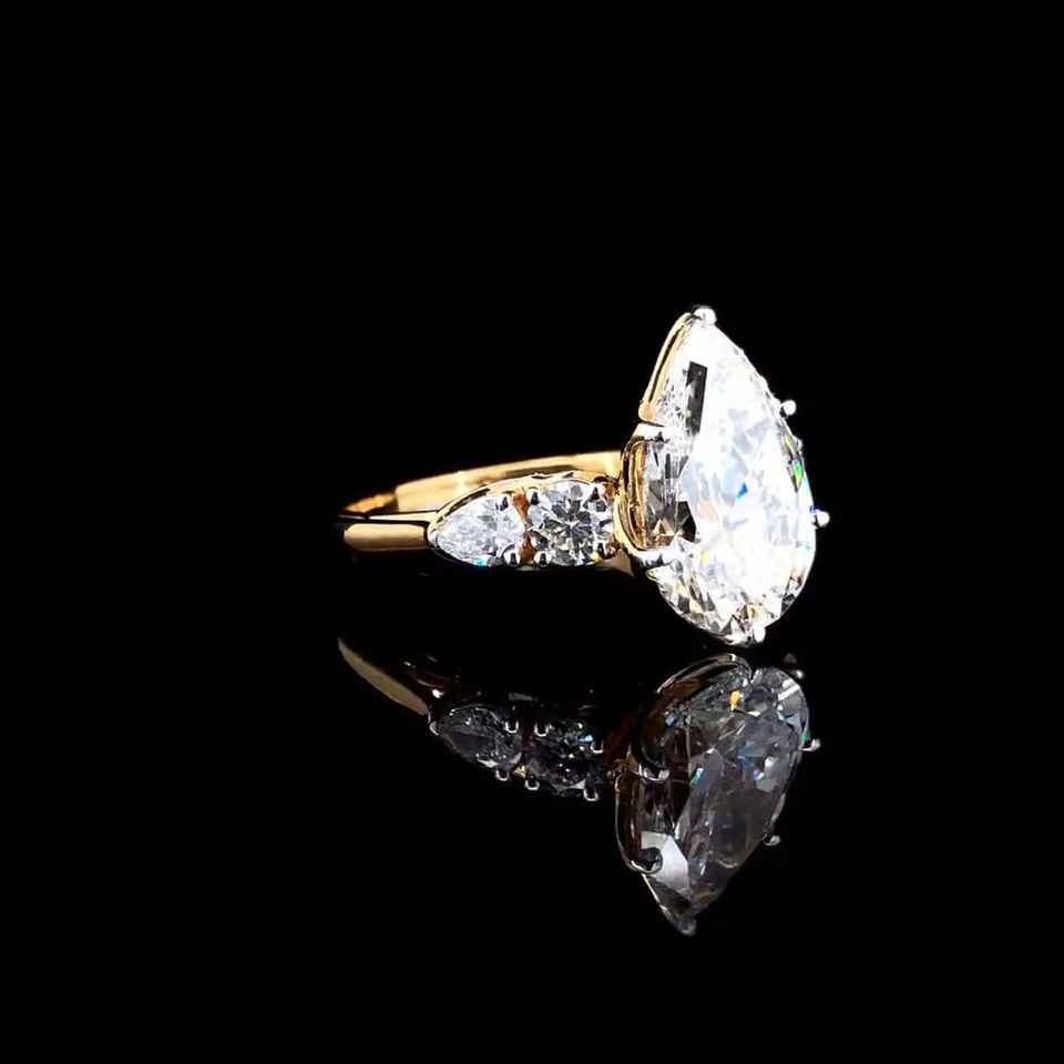 Bague pour femme Privaa Jewels Luxury 4.00CT en diamant de laboratoire, plaqué or jaune 18 carats, forme poire