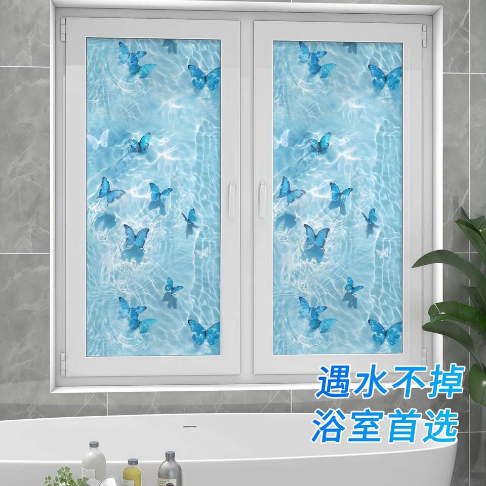 Privacy Film Window Stickers Light Filtering Opaque PVC Waterproof Static Cling For Bathroom Shower Minimalist Design White