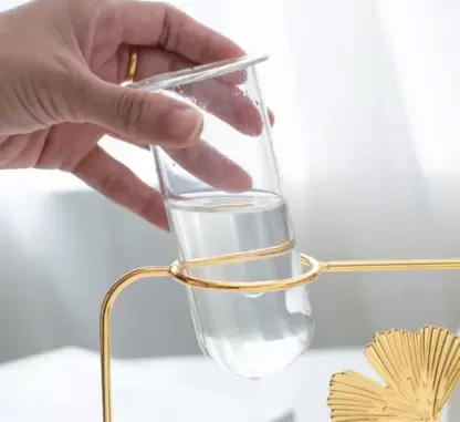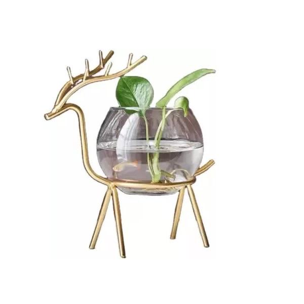 Vases à fleurs de conception antique à marque privée, best-sellers, avec tubes en verre, cadre en fer et base en bois, couleur personnalisée
