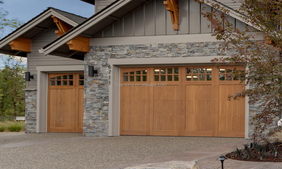 Télécommande électrique privée personnalisée avec télécommande par application Porte de garage en bois massif, chêne blanc, chêne rouge, teck de cèdre rouge, cerisier