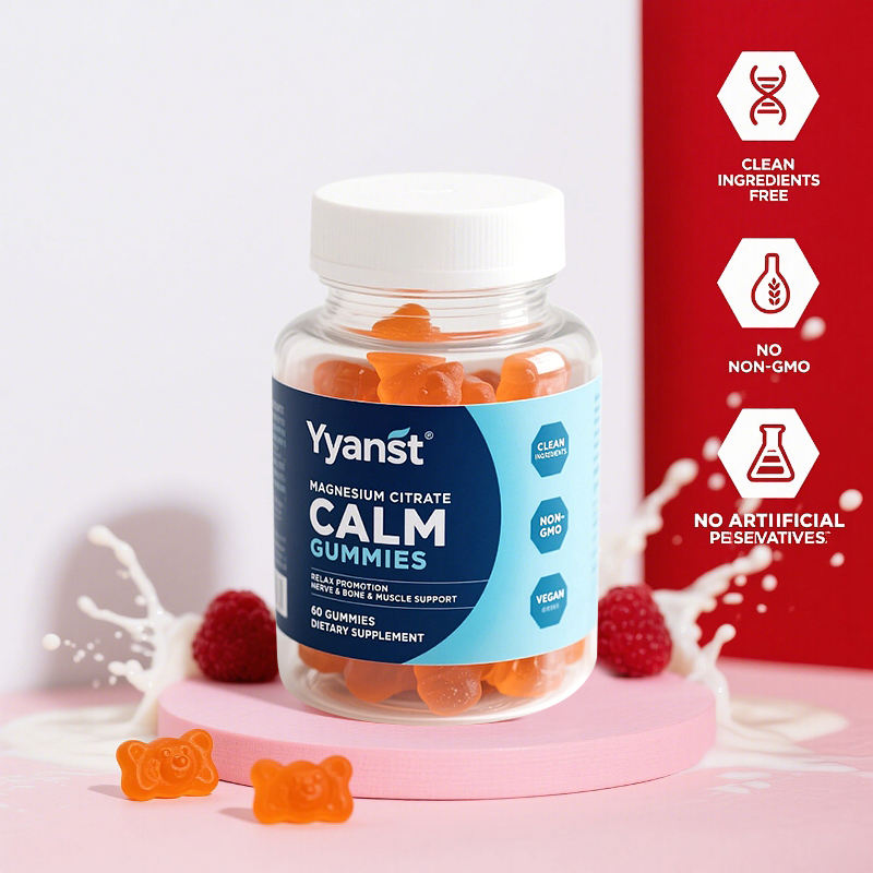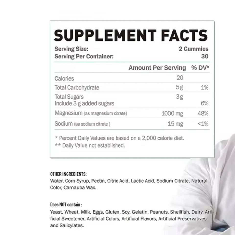 Gummies au citrate de magnésium 1000 mg Marque Blanche – Apaisement et Soulagement du Stress pour Adultes, Favorise la Digestion, 3g par Gummy, Personnalisable, Complément Alimentaire