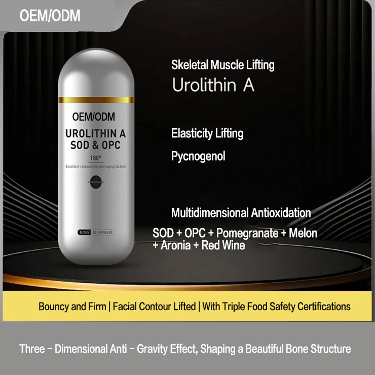 Ingrédient principal:Urolithine A, Extrait d'écorce de pin (Pycnogenol), Superoxyde dismutase (SOD), Proanthocyanidines oligomères (OPC), Extrait de grenade, Extrait de melon, Extrait d'Aronia, Extrait de vin rouge