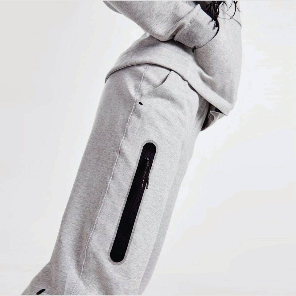 Marque privée 69% coton 31% Polyester femmes Tech polaire survêtement gris chiné fermeture éclair à capuche Joggers pantalons de survêtement Sweat s