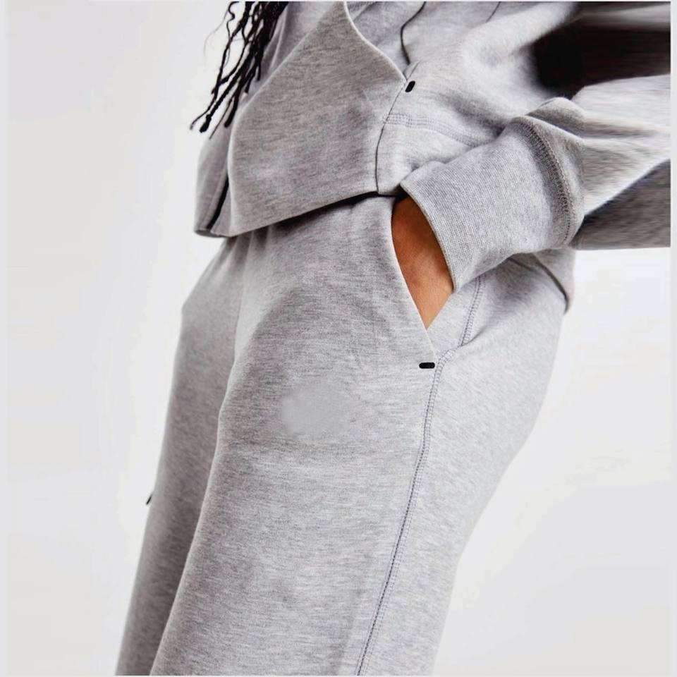 Marque privée 69% coton 31% Polyester femmes Tech polaire survêtement gris chiné fermeture éclair à capuche Joggers pantalons de survêtement Sweat s