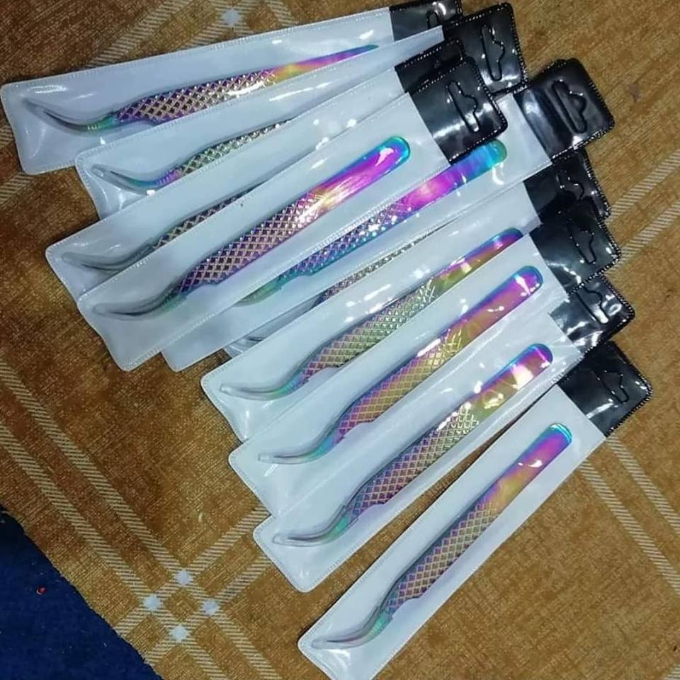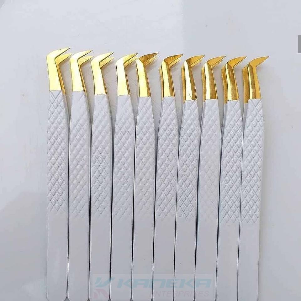 Pince à épiler professionnelle multifonctionnelle antistatique en acier inoxydable à pointe pointue en forme de L à 90 degrés pour extensions de cils, marque privée