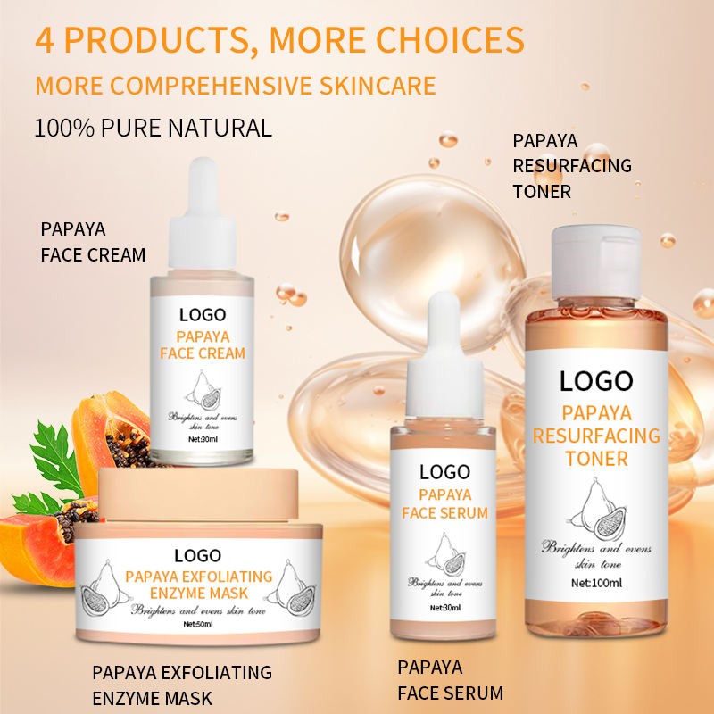 Ensemble de soins de la peau éclaircissant pour l'acné et les taches brunes en marque privée, extrait de papaye, ensemble de soins de la peau éclaircissant