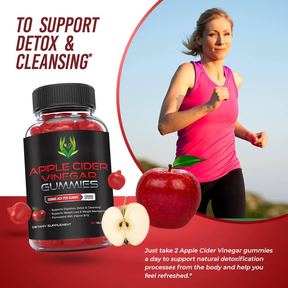 Gummies au vinaigre de cidre de pomme pour adultes en marque propre, 500 mg de vitamine B6, supplément de folate, 100 % naturel, biologique, soutien à la détoxification et au nettoyage