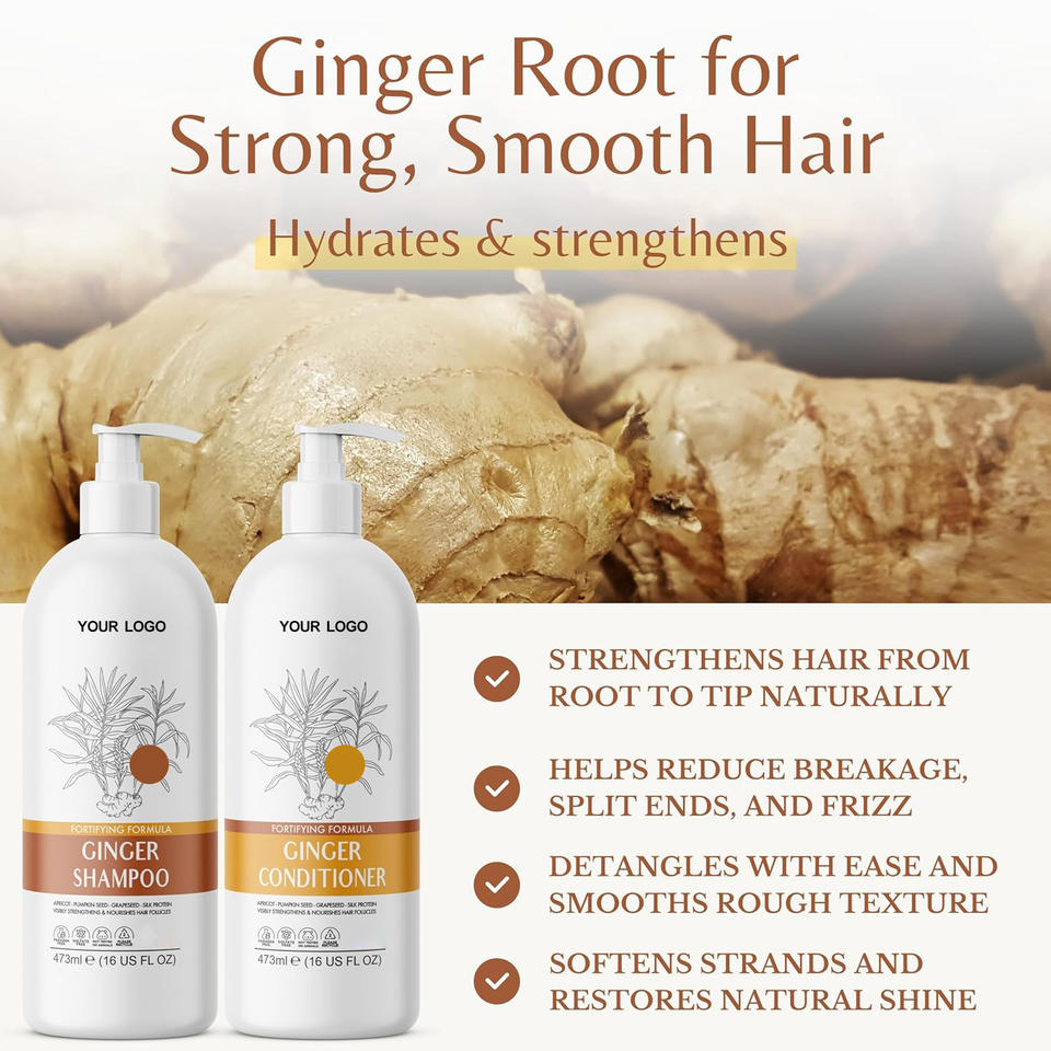 Shampooing et revitalisant pour cheveux à base de gingembre, marque privée, anti-chute, contrôle du sébum, renforce la croissance des cheveux