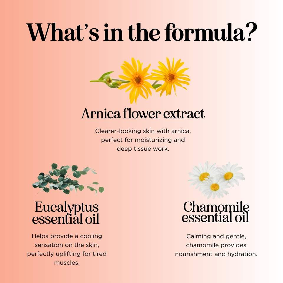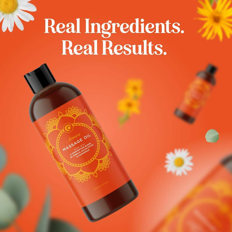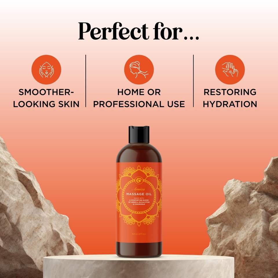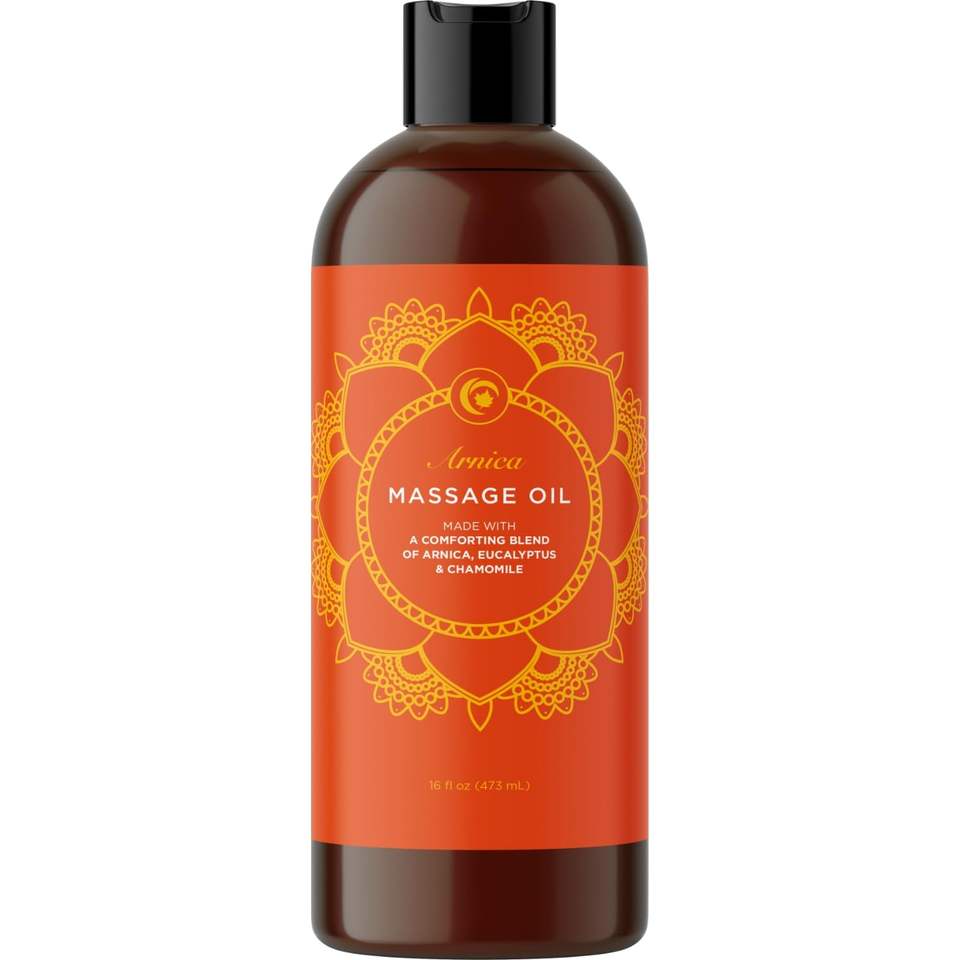 Huile de massage pour le corps à l'extrait d'arnica en marque propre, naturelle, relaxante, hydratante, nourrissante pour les muscles et les articulations endoloris, fraîche