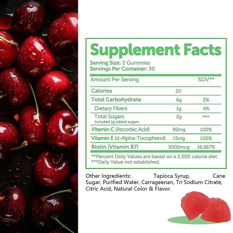 Bonbons à la biotine de marque privée avec suppléments de santé favorisent la croissance des cheveux de la peau des ongles réduisent la perte de cheveux