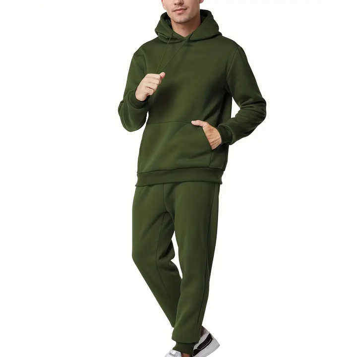 Private Label Blank Men's Winter Tracksuit Custom Logo 2-Piece Sweat Suit Set 100% Cotton Hooded Elastic Waist Breathable