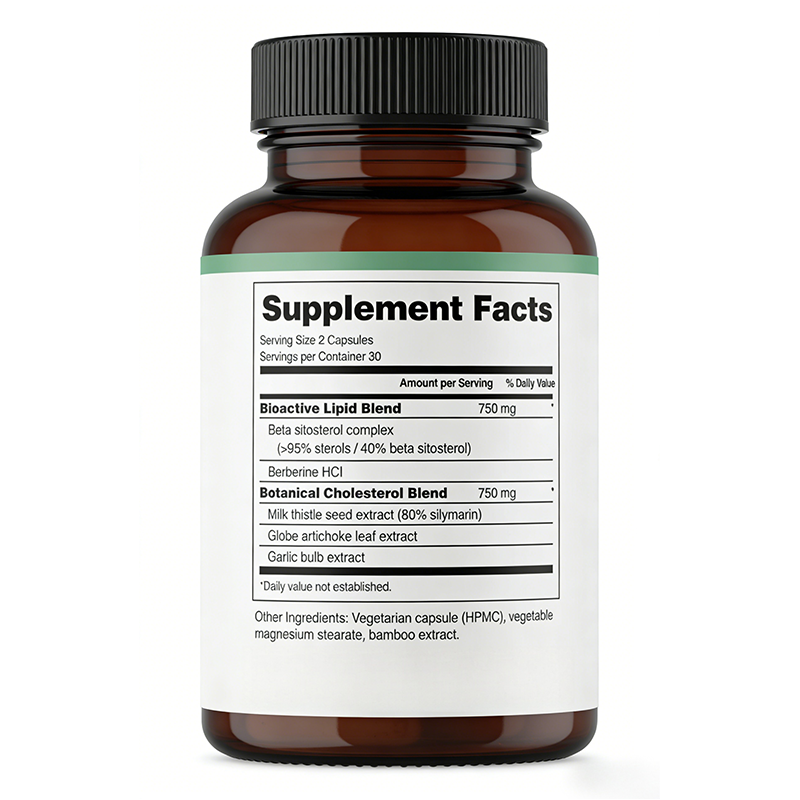Complément de soutien au cholestérol sous marque privée : Complexe de berbérine avec extrait de chardon-Marie, ail et artichaut – 60 capsules