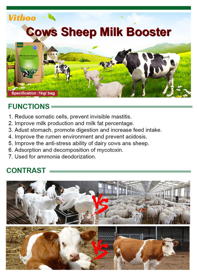 Booster de production de lait pour vaches, moutons et chèvres en marque privée, 1 kg, augmente la production de lait, le taux de matière grasse du lait, réduit le nombre de cellules somatiques, prix de gros