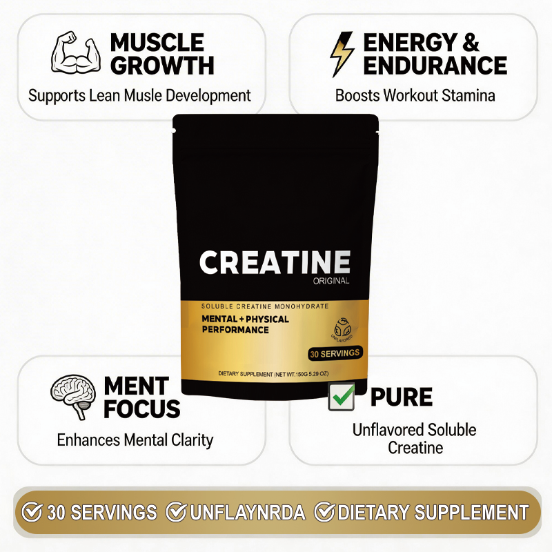 Complément de créatine monohydrate en marque privée, poudre de créatine soluble, soutient les muscles, la musculation pour hommes et femmes