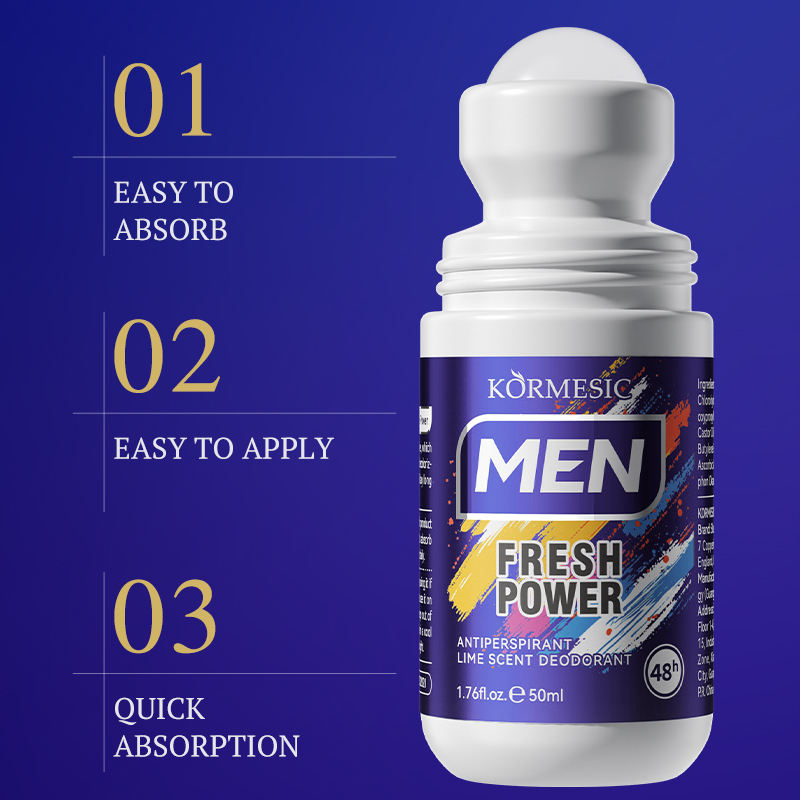Déodorant anti-transpirant roll-on KORMESIC 50 ml pour homme, parfum citron vert frais, longue durée 48h, marque privée, OEM personnalisé