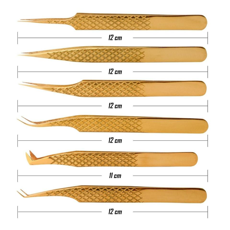 Private Label Custom Professional Eyelash Tweezers Ladies Gold Diamond Grips Straight Volume Fiber Tips Stainless Steel