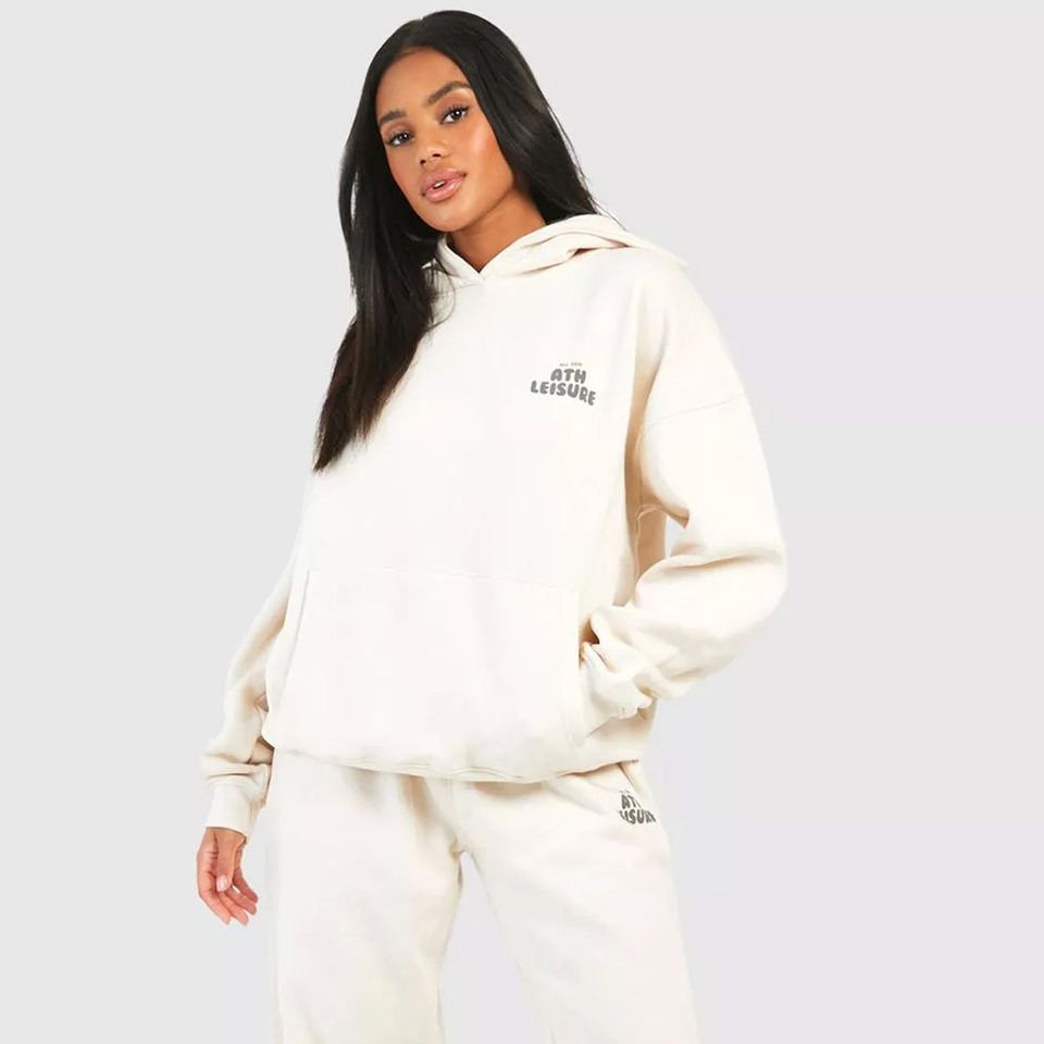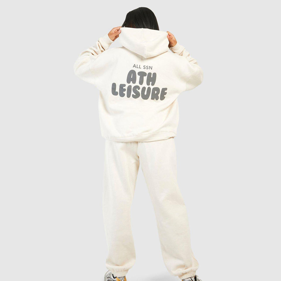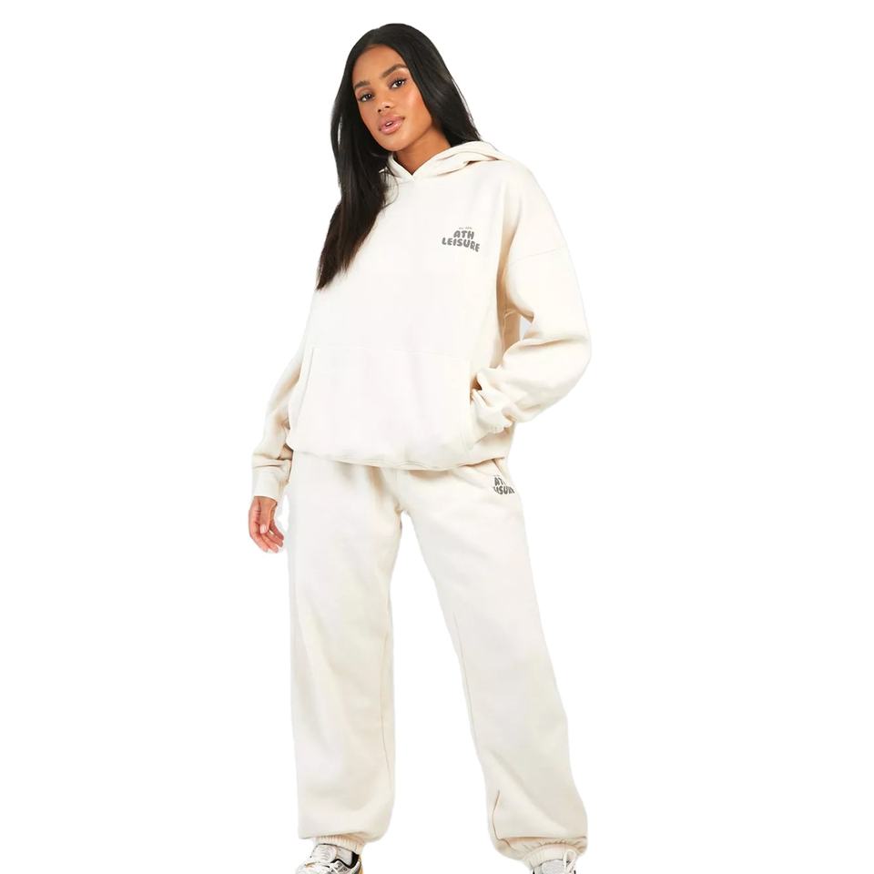 Survêtement en molleton imprimé respirant pour femme, personnalisable avec logo, couleur blanche, 100 % coton, haute qualité